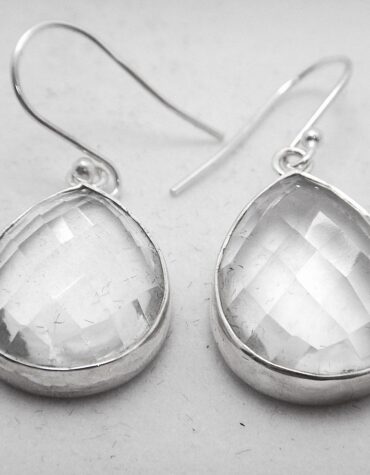 925 Sterling silver earrings set with natural clear quartz 26.15 X 16 MM