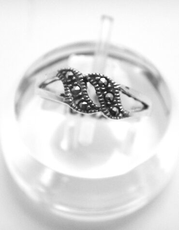 925 Sterling silver ring set with genuine marcasite Approx size 9mm wide