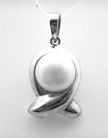 Rhodium plated 925 sterling silver pendant set with freshwater pearl DIAM 33.8 MM