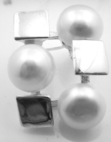 Rhodium plated 925 sterling silver pendant set with 3 Natural freshwater pearls Approx size 26mm x 20mm Matching earrings available