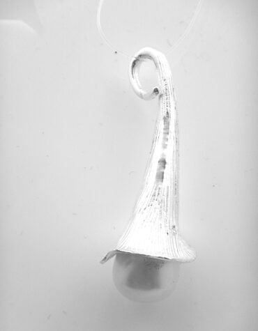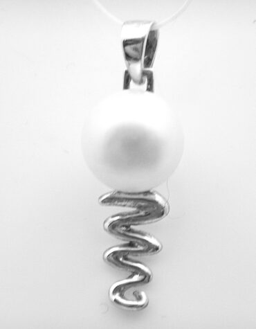 Rhodium plated 925 sterling silver pendant set with natural freshwater pearl Approx size 24mm long Matching earrings available