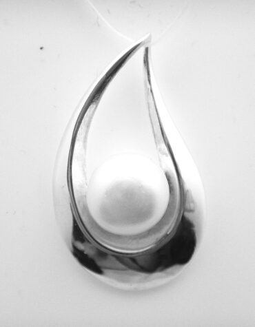 Rhodium plated 925 sterling silver pendant set with natural freshwater pearl Approx size 33mm long Matching earrings available