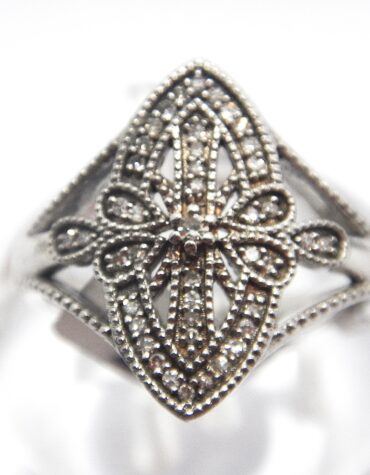 Rhodium plated 925 sterling silver ring set with natural Diamonds 15.85 X 10.25MM