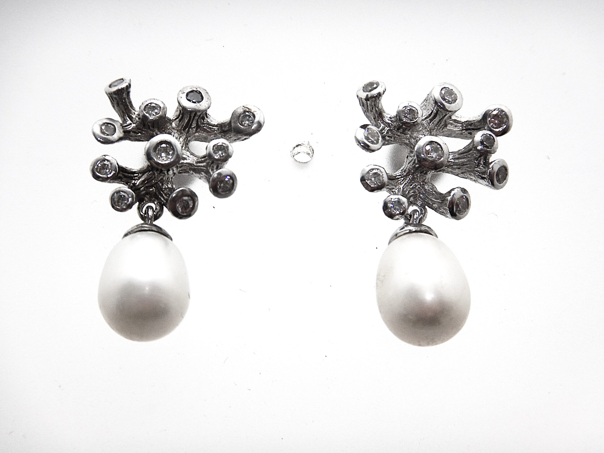 925 Sterling silver coral shapped stud earrings set with white cubic zirconia & natural freshwater pearls