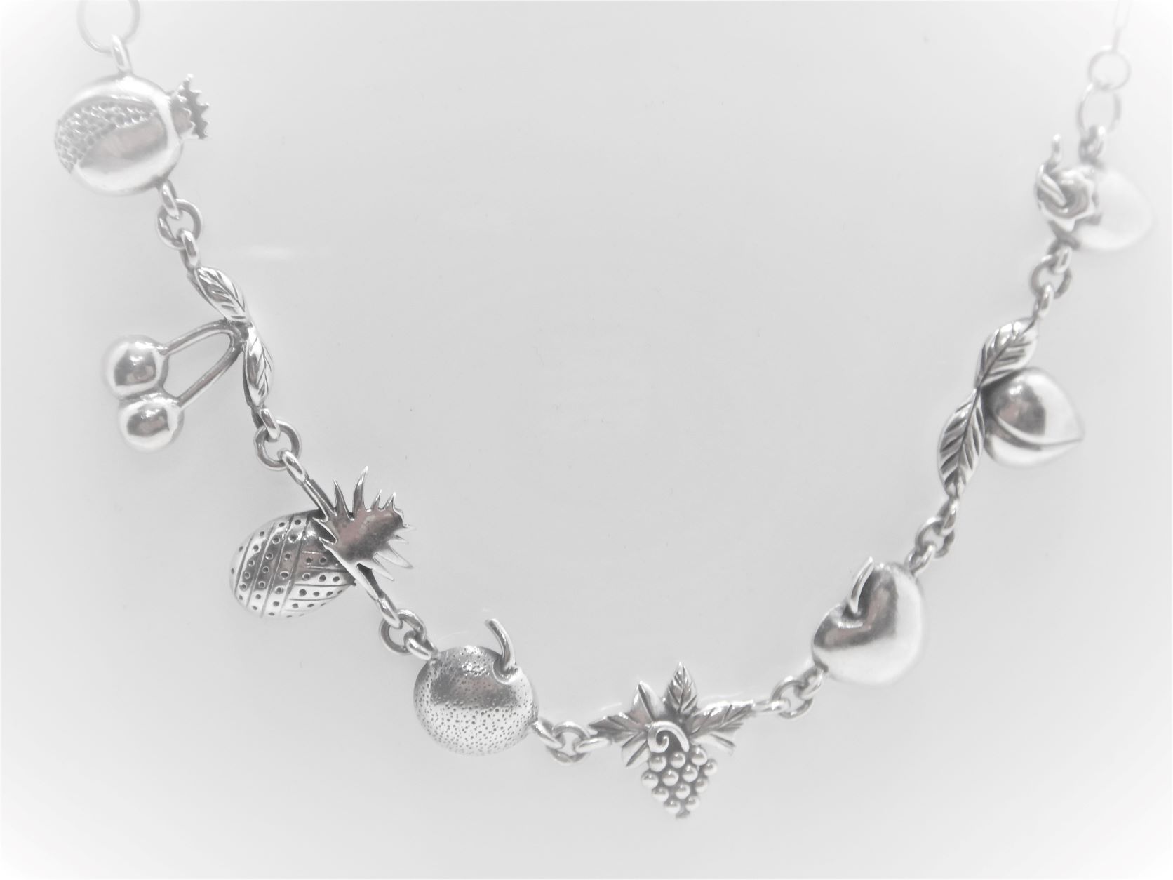 925 Sterling silver necklace with 8 assorted fruit charms