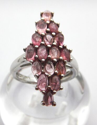 Rhodium Plated 925 sterling silver ring set with natural Pink Tourmaline 30 X 14.4MM