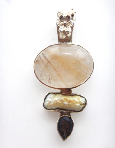 Rhodium plated 925 sterling silver ring set with natural Rutile quartz