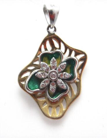 Rhodium & gold plated 925 sterling silver pendant representing coral set with white cubic zirconia Approx size 49mm long