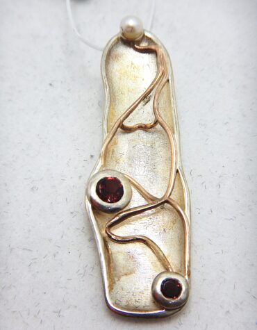 Rhodium plated 925 sterling silver pendant with natural Rode quartz Approx size 35mm x 14mm