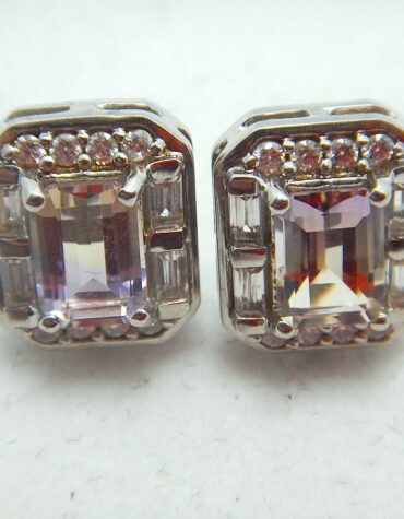 Rhodium plated 925 sterling silver pendant & earrings set with cubic zirconia & colour changing crystals