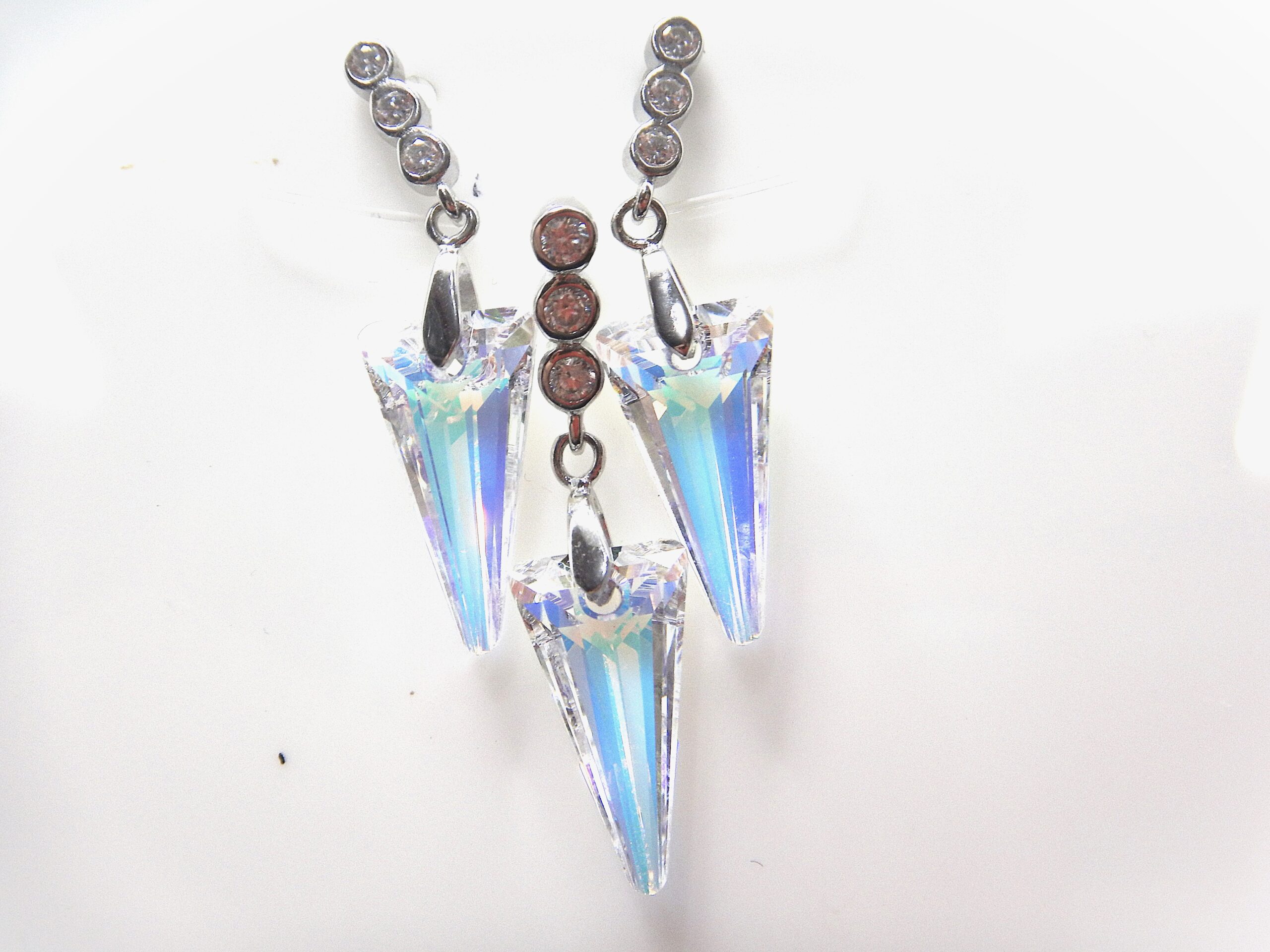 Rhodium plated 925 sterling silver pendant & earrings set with cubic zirconia & colour changing crystals Approx size pendant 35mm long Approx size earrings 35mm long