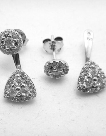 Rhodium plated 925 sterling silver pendant & earrings set with cubic zirconia & colour changing crystals