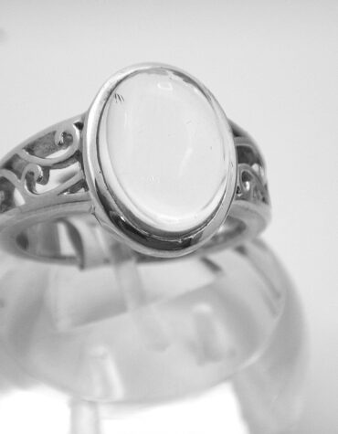Rhodium plated 925 sterling silver ring set with natural Clear quartz Approx size 15.5mm x 12.7mm
