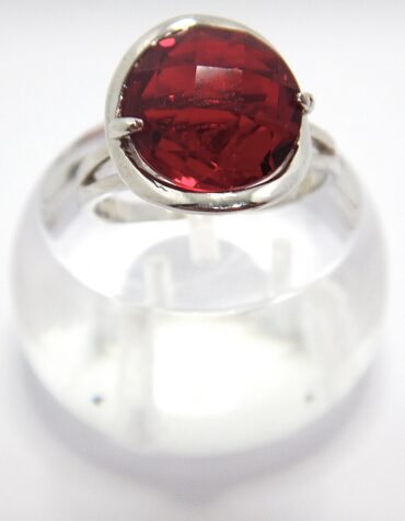 Rhodium plated 925 sterling silver set with synthetic red stone Approx size 14mm diam