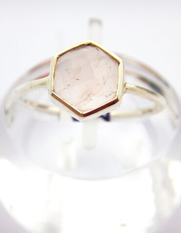 Rhodium plated 925 sterling silver ring set with natural Rose quartz DIAM 9.3MM