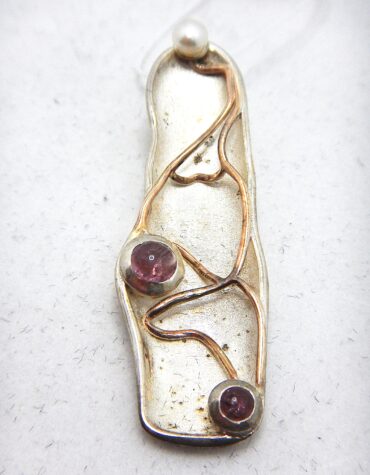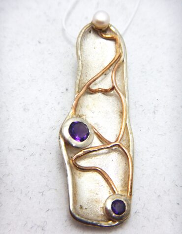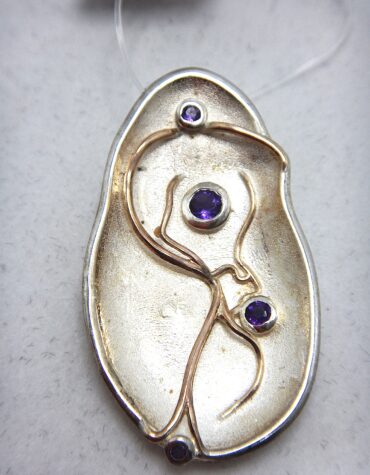 Rhodium plated 925 sterling silver pendant with natural Amethyst