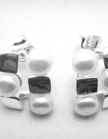 Rhodium plated 925 sterling silver ring set with natural freshwater pearl Approx size 23.6mm diam