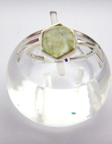 Rhodium plated 925 sterling silver ring set with Prehnite DIAM 9.3MM