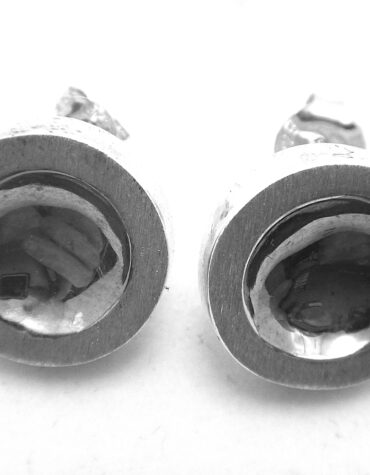 Black & White Rhodium plated 925 sterling silver concave earrings Approx size 15mm diam