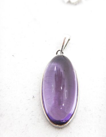 Rhodium plated 925 sterling silver pendant with natural Amethyst Approx size  17mm x 7mm  Matching earrings & ring available