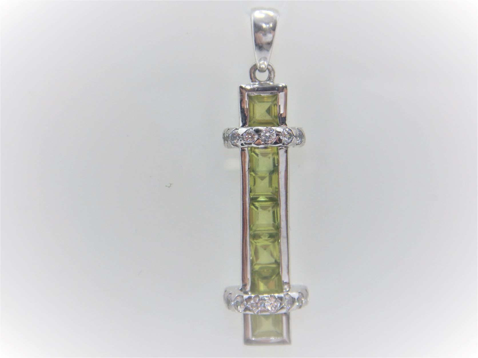Rhodium plated 925 sterling silver pendant with natural Peridot & cubic zirconia