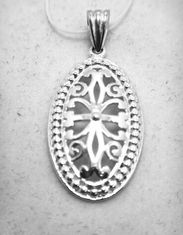 Rhodium plated 925 sterling silver pendant set with natural Mother of pearl & cubic zirconia Approx size 14mm diam Matching earrings available