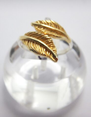 Rhodium & gold plated 925 sterling silver ring feather ring 16.1MM WIDE
